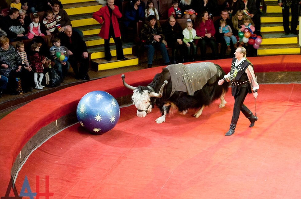 «Ранним утром в Донецк прибыл целый зоопарк – 70 экзотических животных, - рассказал он. - Среди них пумы и ламы, пони и муфлоны, верблюды и впервые - американские бизоны. Они стали героями уникального представления «Росгосцирка» «Мир животных - мир друзей». С начала военных действий на Донбассе это первое полноценное представление с таким обилием животных».