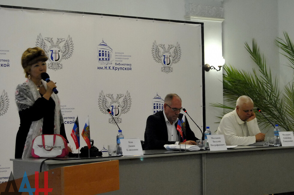 Творческая встреча с российскими литераторами была организована министерством культуры ДНР и главной библиотекой Республики. Собравшиеся в ее лекционном зале более 100 читателей приветствовали председателя Оренбургского регионального отделения «Союза российских писателей» Виталия Молчанова, лауреата литературных премий Диану Кан и земляка жителей Донбасса, прозаика Александра Филиппова.