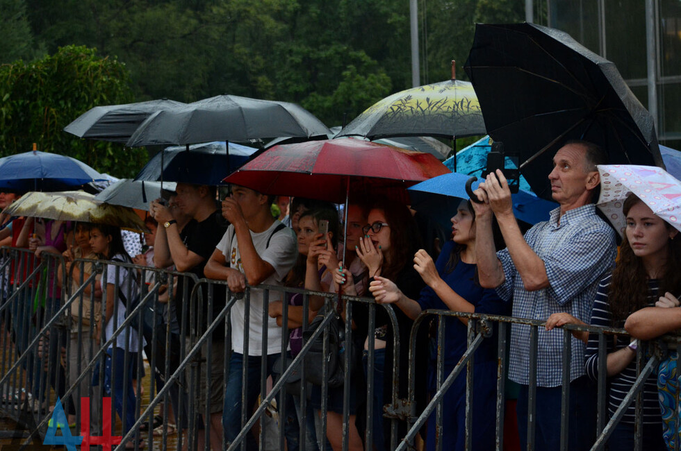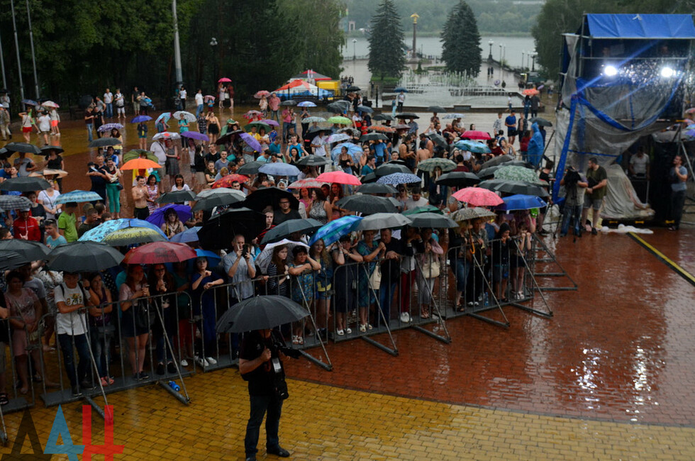 Следует отметить, что изначально выступление артистов планировалось на 17:00, однако было перенесено на более позднее время из-за сильного ливня.