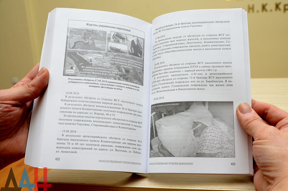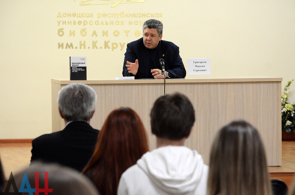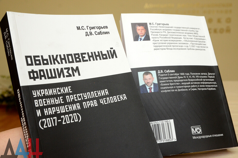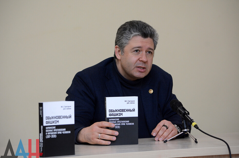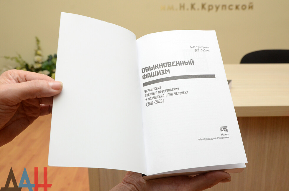 Донецк, 20 апр - корр. ДАН. Презентация книги "Обыкновенный фашизм. Украинские военные преступления и нарушения прав человека (2017 - 2020)" состоялась сегодня в Донецкой республиканской универсальной научной библиотеке им. Н.К. Крупской. Издание представил автор - директор Фонда исследования проблем демократии, кандидат политических наук, член Общественной палаты РФ Максим Григорьев.