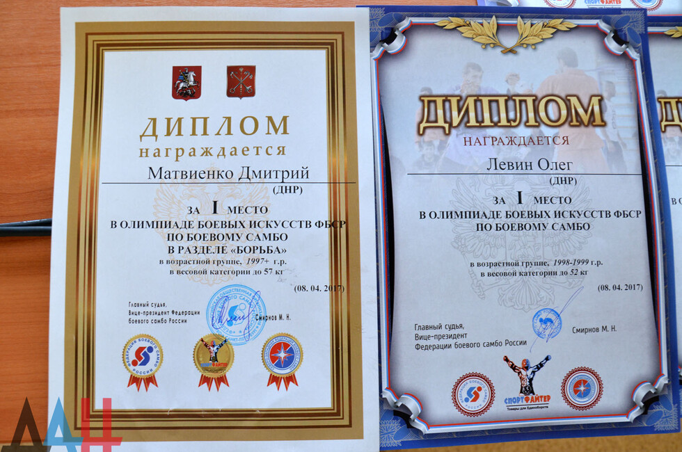 Донецк, 12 апр – ДАН. (Внимание! Были внесены уточнения по тексту) Спортсмены из ДНР завоевали шесть золотых, три серебряных и одну бронзовую медали на международном турнире по боевому самбо в рамках XI олимпиады боевых искусств «Восток-Запад», которая проходила с 7 по 9 апреля в российском Санкт-Петербурге. Об этом сегодня на пресс-конференции в ДАН сообщил первый заместитель министра молодежи спорта и туризма Республики Александр Громаков.