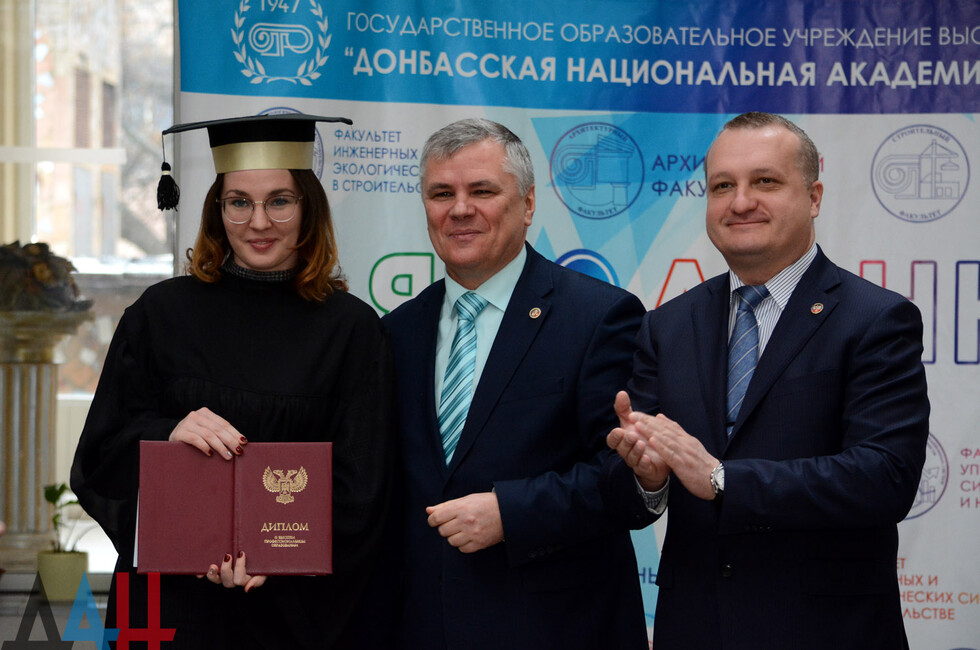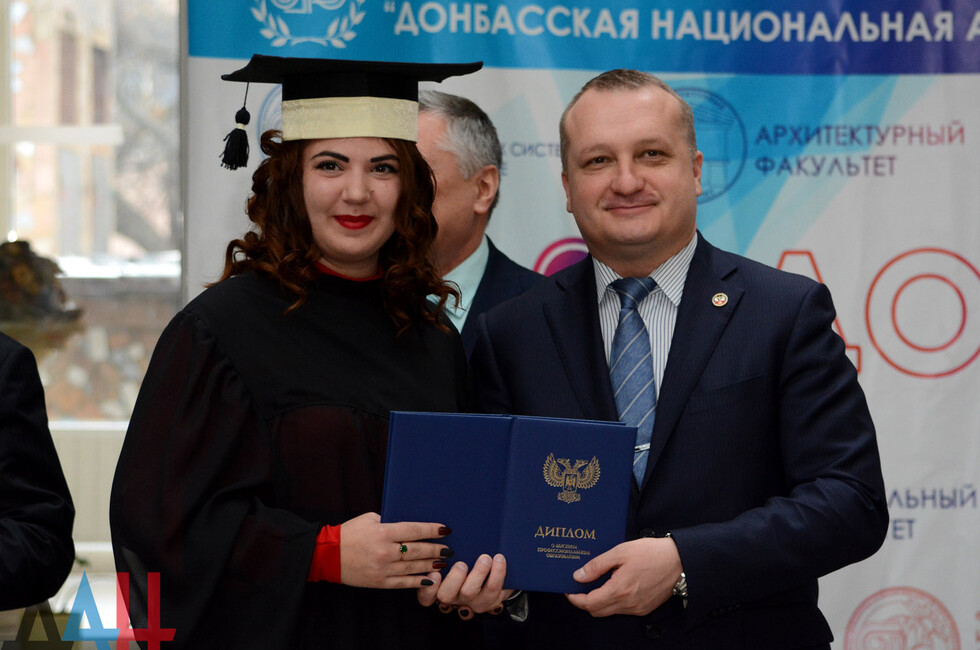 Напомним, что дипломы российских вузов выпускникам из Донбасса начали выдавать в 2015 году. Сегодня же вузы ДНР, получившие аккредитацию в РФ могут сами выдавать дипломы российского образца. Первым вузом ДНР, получившим аккредитацию в России, в октябре 2018 года стал Донецкий национальный медицинский университет им. Горького. ДонНАСА была аккредитована в РФ в июне текущего года. *ха*дя*гж