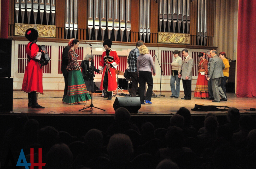 «Участники музыкального казачьего спецназа «Беркут» уже выступили в Луганске и Алчевске, и вот сегодня они в Донецке на сцене филармонии. Артисты здесь, чтобы передать дончанам привет и слова поддержки от всей Югры, такого далекого и в то же время такого близкого по духу края», – сказал корр. ДАН председатель региональной организации «Содружество» Ханты-Мансийского автономного округа Эдуард Логинов.