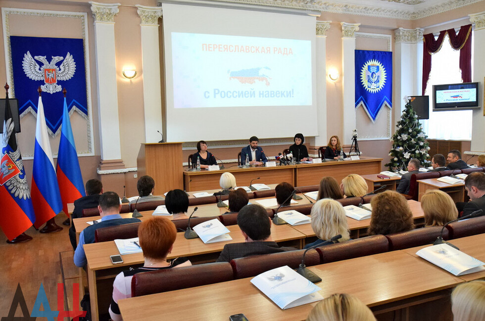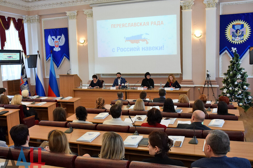 Донецк, 18 янв – корр. ДАН. Телемост с участием ученых из ДНР, ЛНР и РФ прошел сегодня в конференц-зале Донецкого национального университета экономики и торговли имени М. Туган-Барановского в рамках международной научно-практической конференции по случаю 364-й годовщины Переяславской рады. Свои доклады представили порядка 20 человек.