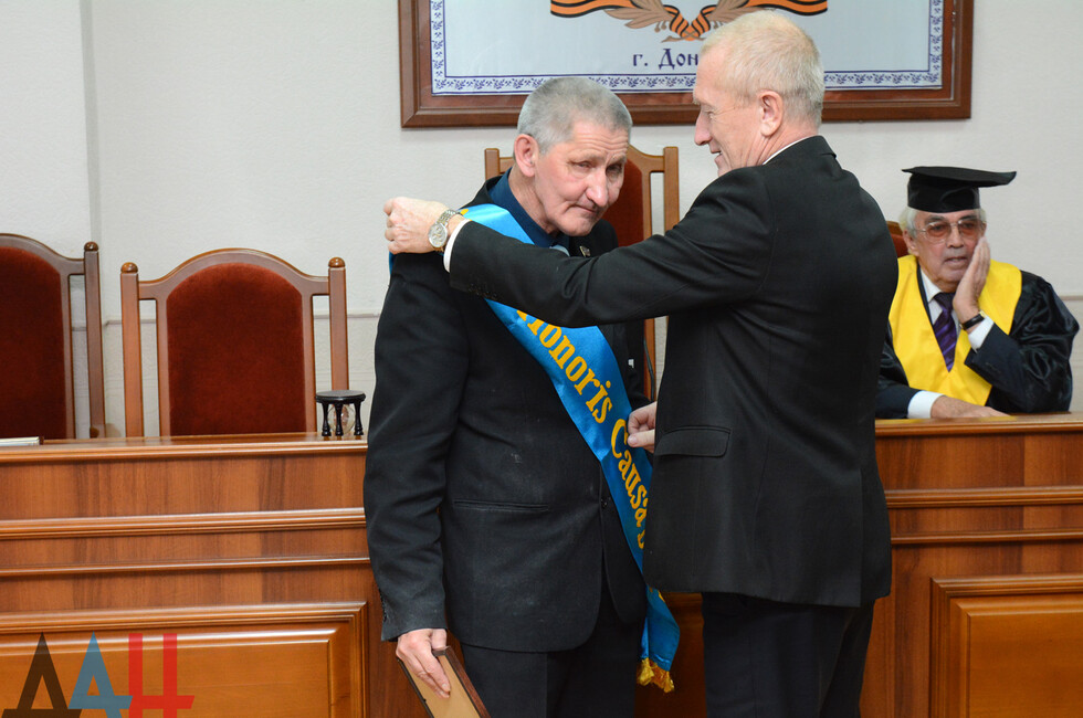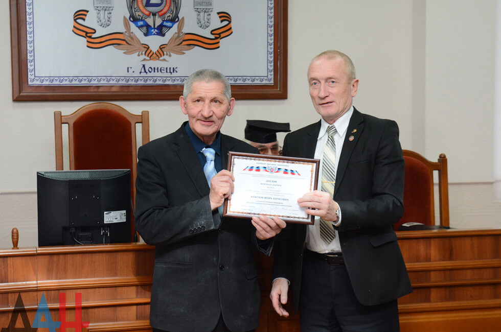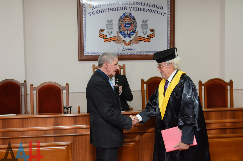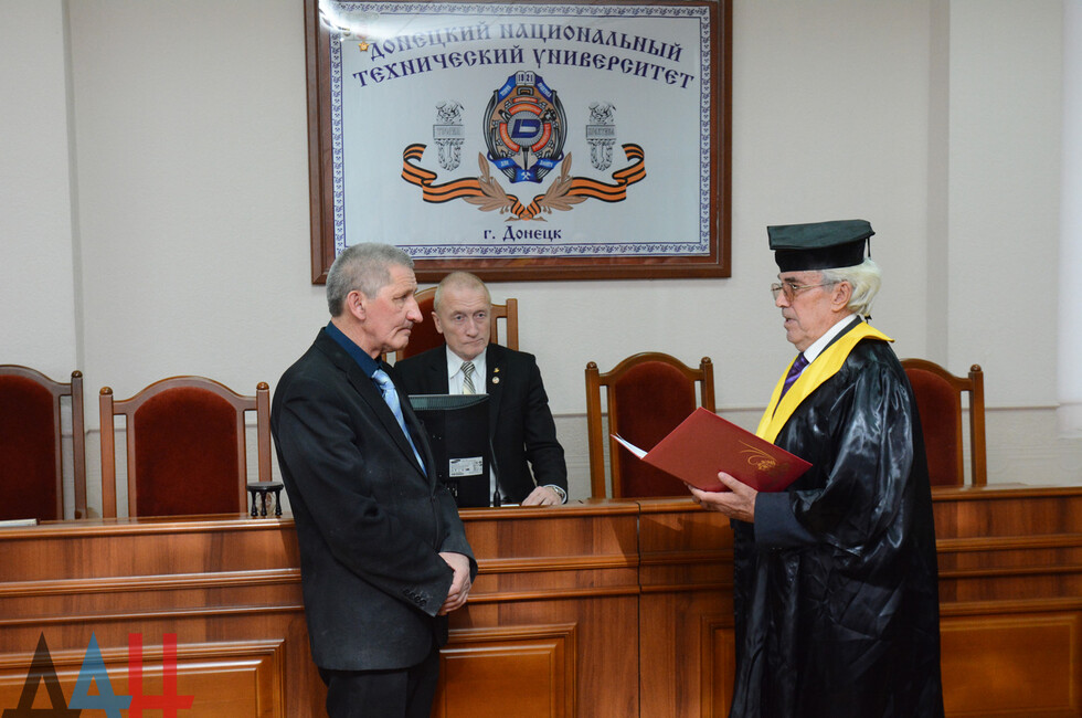 Звание было присвоено на заседании ученого совета ДонНТУ. Решение было поддержано единогласно. Церемония прошла по давним традициям вуза. Профессор произнес клятву, затем ему был вручен соответствующий диплом.