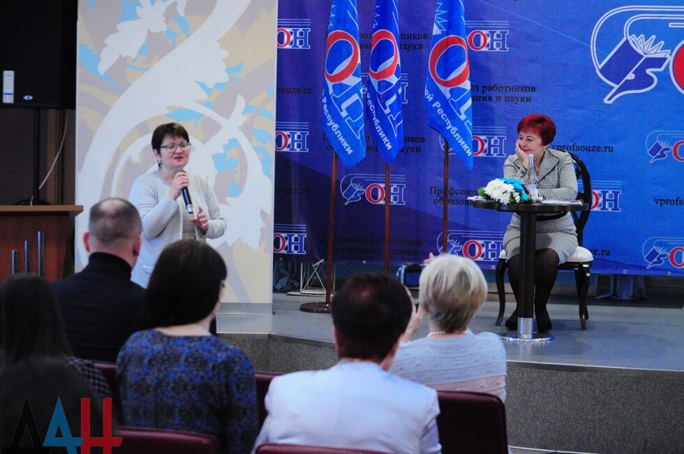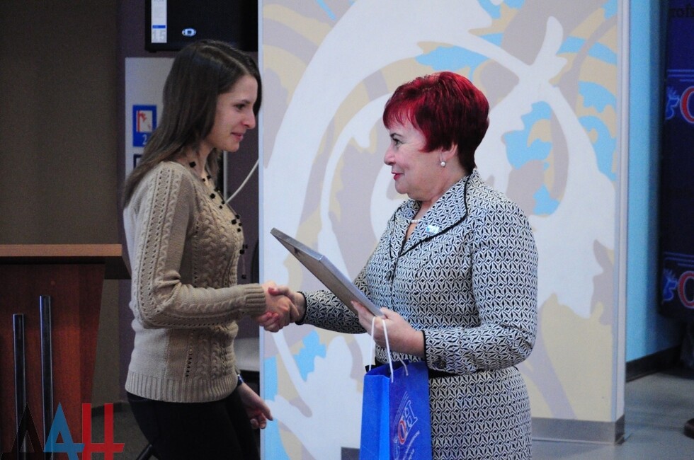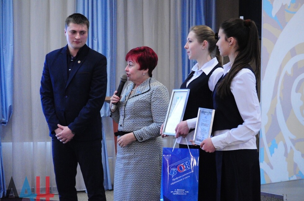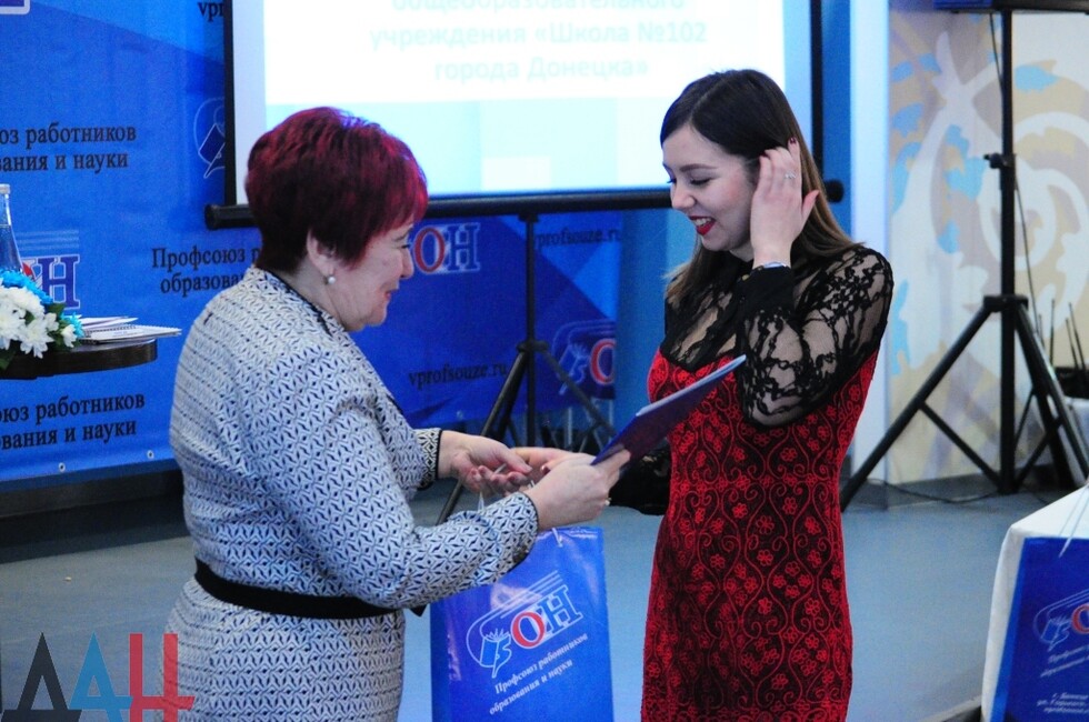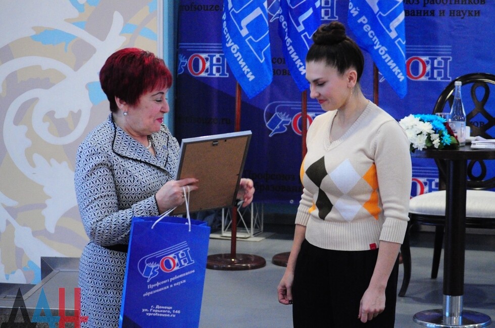 На церемонии награждения присутствовали министр образования и науки ДНР Лариса Полякова и председатель профсоюза работников образования Ася Горшкова. Открыла мероприятие глава Минобрнауки страны.