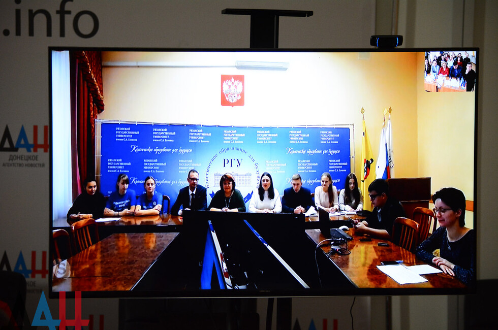 Донецк, 6 дек – ДАН. Представители Донецкого национального университета экономики и торговли имени М. Туган-Барановского в ходе видеоконференции обсудили с коллегами из Рязанского государственного университета им. С. Есенина основные вопросы соглашения о сотрудничестве. Руководство донецкого вуза вышло на связь из пресс-центра ДАН.