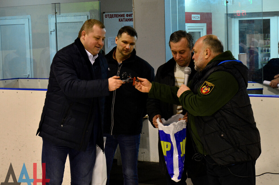 Мероприятие прошло сегодня в ледовой арене «Алмаз» в Донецке перед матчем столичного дерби среди юных спортсменов. Благодарность за презент российскому гостю выразили министр молодежи, спорта и туризма Михаил Мишин и президент Федерации хоккея Республики Владимир Набоков.