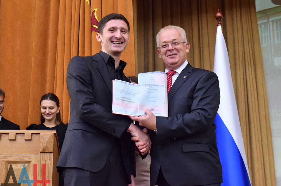 Он уточнил, что среди выпускников, получивших сегодня российские дипломы, также есть жители подконтрольной Киеву части Донецкой области. Добавим, что всего на торжественном вручении собрались порядка 500 студентов, их родителей и педагогов.