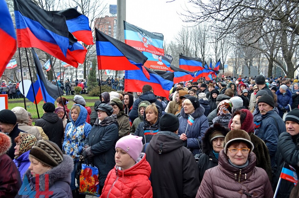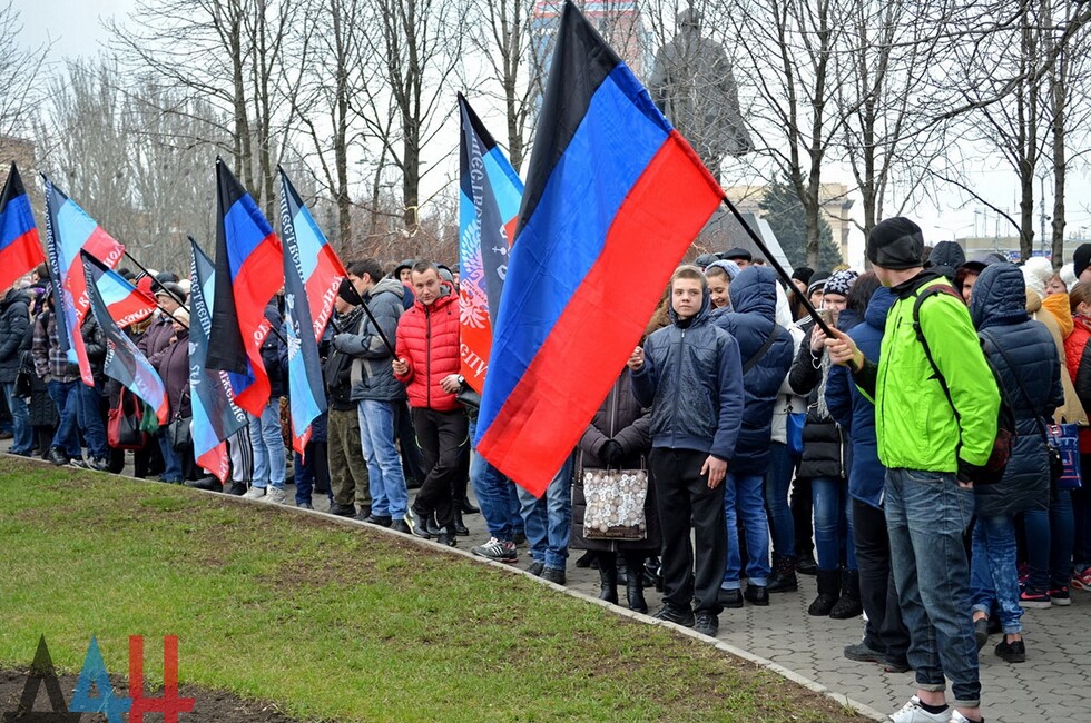 Донецк, 18 мар – корр. ДАН. Митинг, посвященный второй годовщине воссоединения Крыма с Россией, собрал сегодня в Донецке около трех тысяч жителей. Мероприятие прошло в Первомайском сквере на центральной площади столицы.