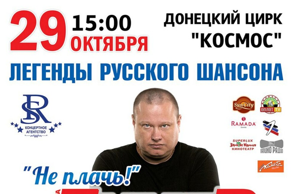 «В донецком цирке «Космос» 29 октября состоится концерт «Легенды русского шансона». В рамках концерта выступят известные группы «Воровайки» и «БумеR». Они исполнят как всем полюбившиеся хиты, так и новые песни», – сказал Смотров.