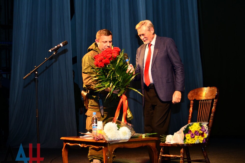 Донецк, 26 окт – ДАН. Творческий вечер советского киноактера и режиссера Александра Михайлова впервые в истории ДНР прошел сегодня в Донецком государственном академическом музыкально-драматическом театре. Концерт посетил Глава Донецкой Народной Республики Александр Захарченко.