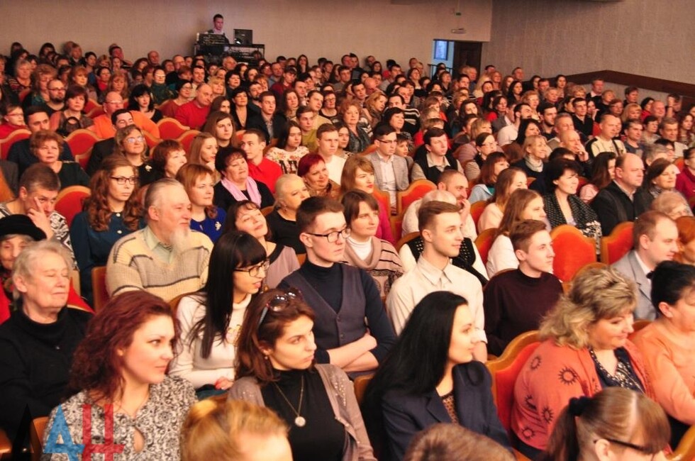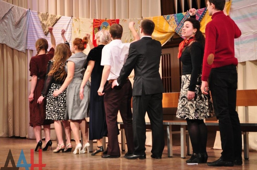 Его поставил художественный руководитель и режиссер театра Роман Пожидаев. Среди зрителей – экс-министр культуры ДНР, генеральный директор филармонии Александр Парецкий.