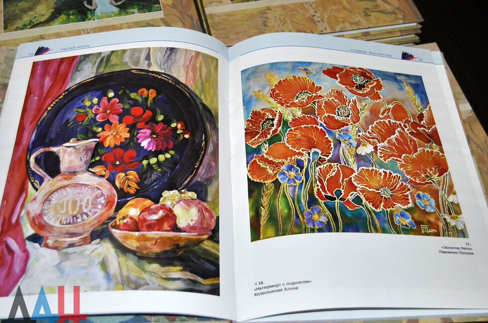 Книга была издана Минкультуры по итогам республиканского конкурса, который был объявлен летом текущего года. На более чем 100 страницах альбома запечатлены разноплановые работы художников возрастом от 9 до 22 лет. Ранее представленные тут работы экспонировались на выставках в ДНР и РФ, часть из них и сегодня выставлена в здании культурного ведомства.