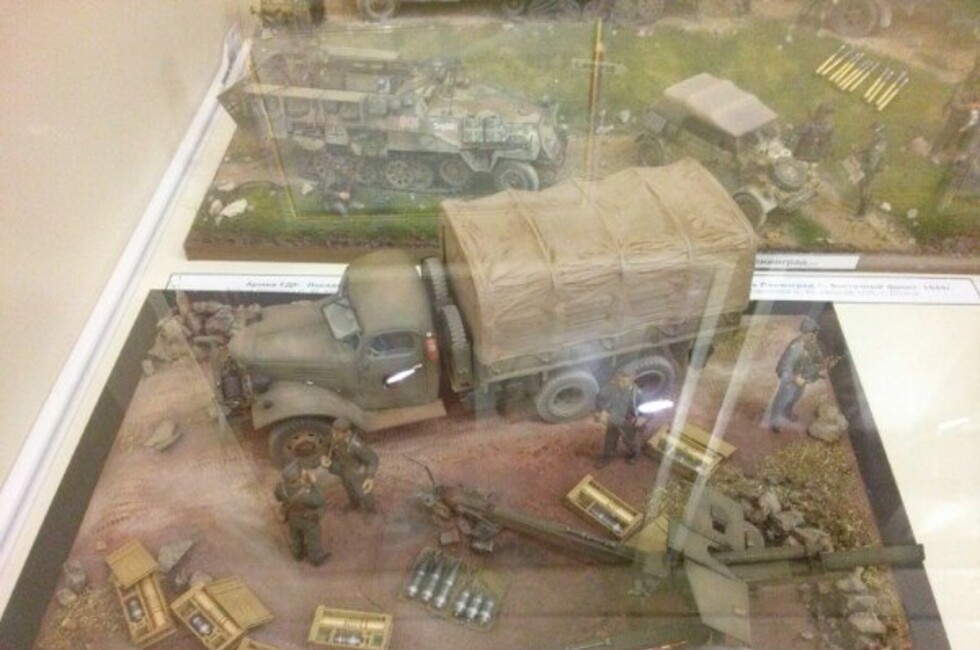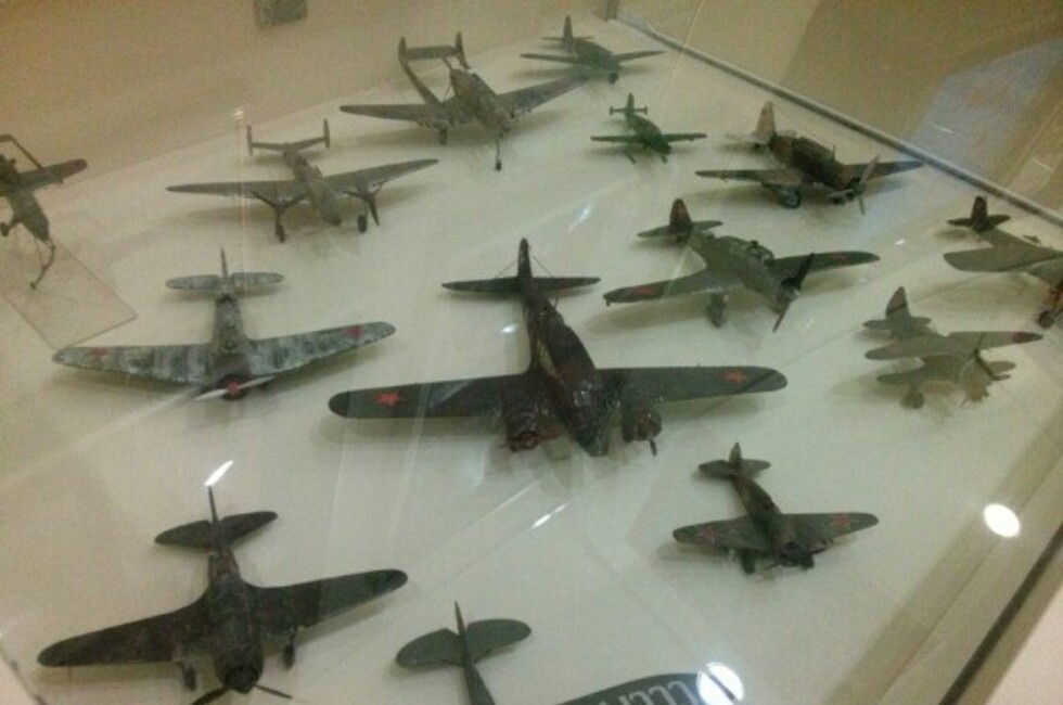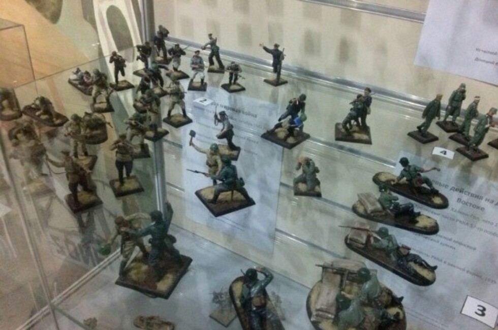 На витринах выставлены модели самолетов СССР, Германии и Великобритании, а также танков, кораблей, железнодорожной техники и фигурки известных личностей: вождя СССР Иосифа Сталина, маршала Георгия Жукова, британского фельдмаршала Бернарда Монтгомери и советского наркома иностранных дел Вячеслава Молотова. Кроме этих экспонатов, также на выставке представлены мини-диорамы – миниатюрные модели, воссоздающие исторические события.
