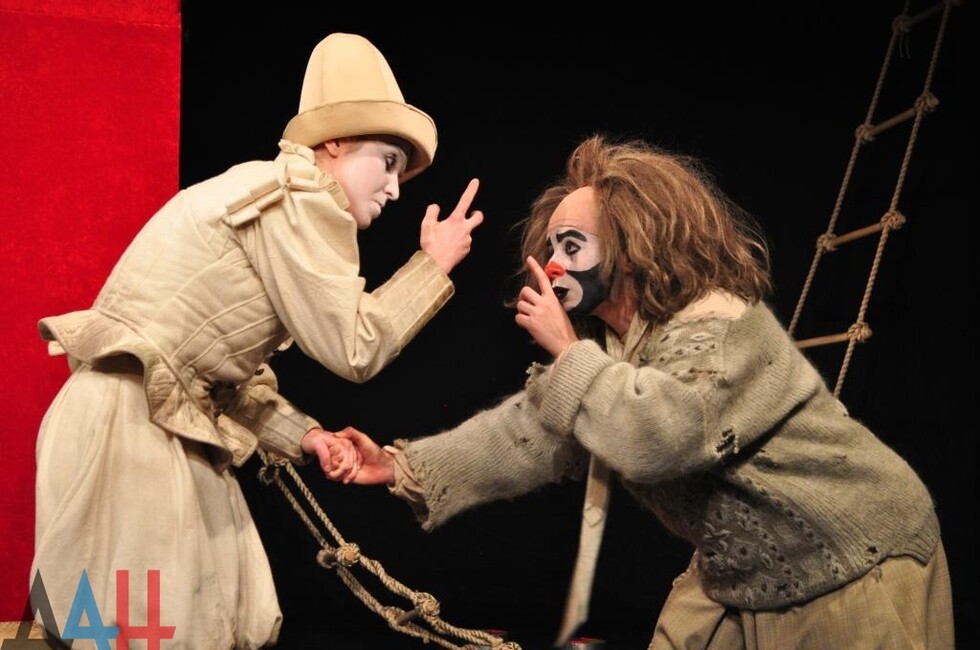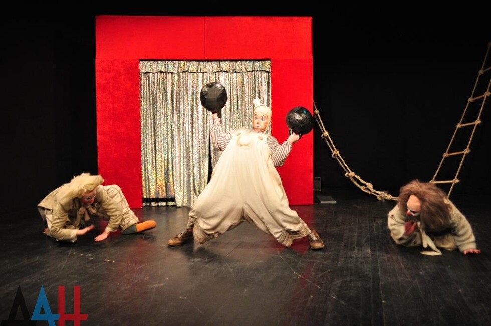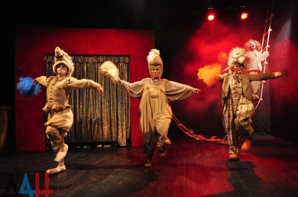 Муздрама не впервые идет на смелые эксперименты. В частности, в декабре 2015 года в столице ДНР состоялась премьера постановки «Двое на качелях». В этом спектакле была использована концепция «театра-круга», когда зрительские места стоят вокруг сцены, окружая актеров со всех сторон. Кроме того в постановке почти отсутствовал реквизит: актеры вместо настоящих предметов использовали воображаемые. *сж*мк*ъъ