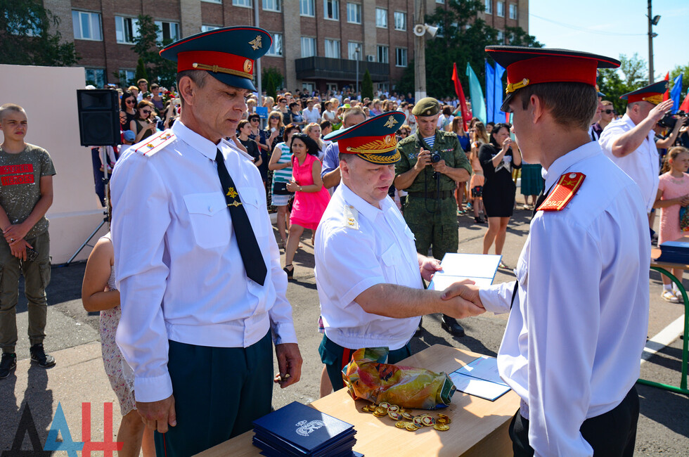 «Сегодня все ребята, которые два года назад пришли в стены лицея с усиленным изучением физической подготовки и военного дела, выпускаются. Пятьдесят пять учеников из 150 идут продолжать обучение в военное училище, - отметил начальник отдела воспитательной работы Донецкого высшего общевойскового командного училища, подполковник Александр Куренков. - Республика сделает все, чтобы они стали достойными гражданами».