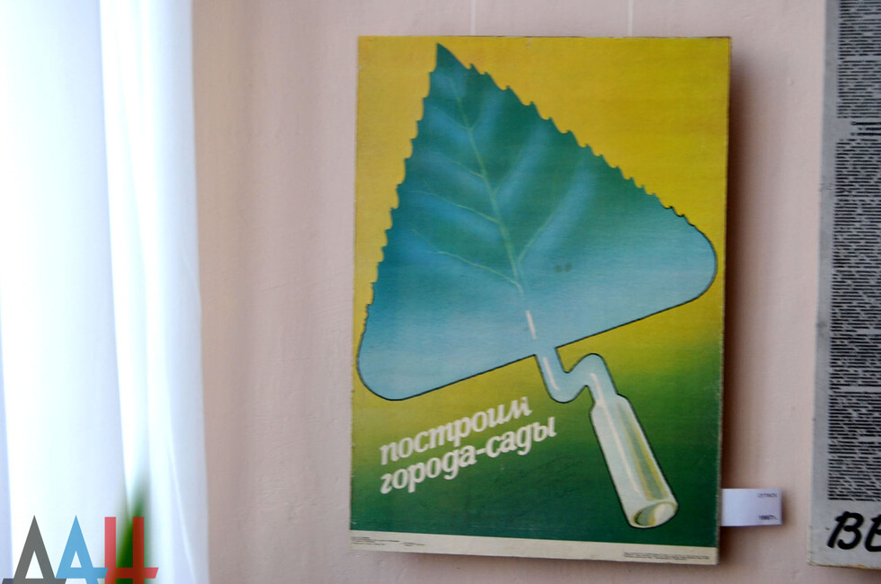Вниманию посетителей представлены плакаты разных лет, посвященные общественной жизни, в том числе защите окружающей среды, борьбе с алкоголизмом и наркоманией. Кроме того, в зале выставлены афиши известных в Донецке творческих коллективов.