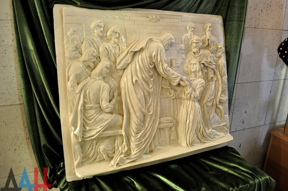 На обозрение публики представлены и созданные Лежениным гипсовые барельефы с ветхо- и новозаветными библейскими сюжетами. Особое же внимание привлекают иконы Почаевской и Казанской Божией Матери, Рождества Христова и Николая Угодника, изготовленные автором по церковным канонам в старинных техниках скань и зернь.