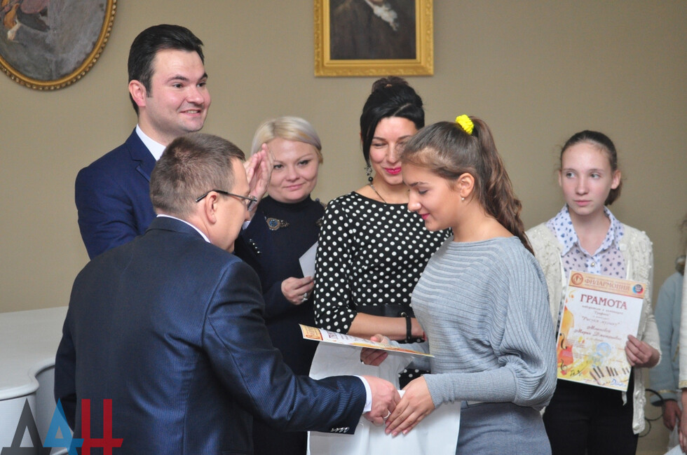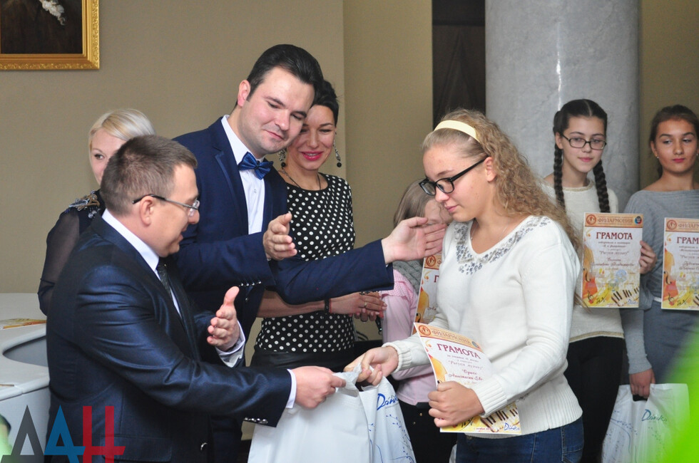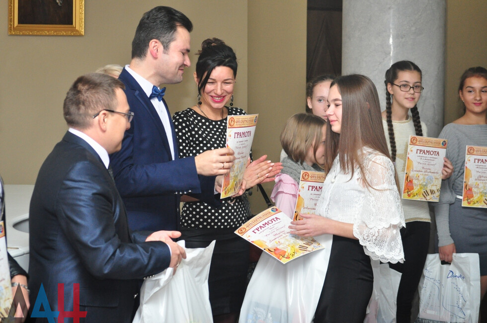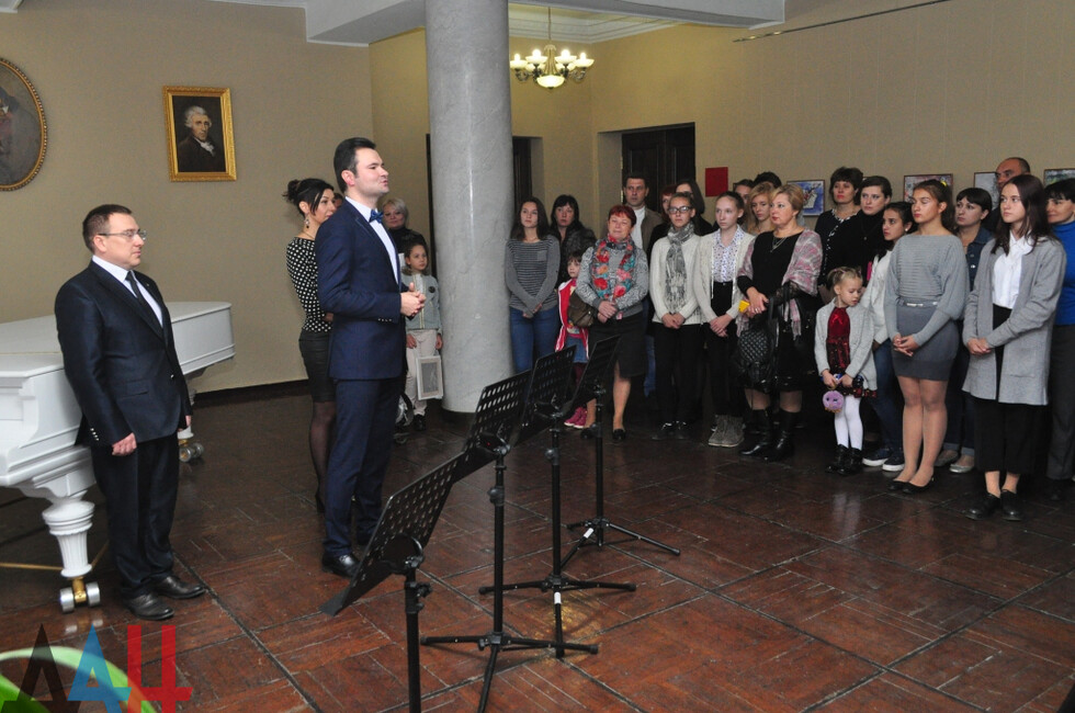 Началось мероприятие с награждения победителей конкурса «Рисуем музыку». На нем присутствовали заместитель руководителя Центрального исполкома общественного движения «Донецкая Республика» Андрей Крамар, генеральный директор донецкой филармонии Александр Парецкий, директор художественного музея «Арт-Донбасс» Екатерина Калиниченко.