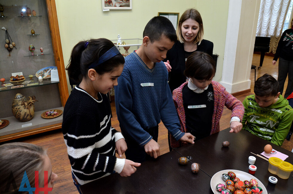 Мероприятие посетили воспитанники Амвросиевской школы-интерната № 4. Для них сотрудники музея организовали мастер-класс по росписи яиц, познакомили их с традиционными пасхальными играми. После дети побывали на самой выставке, где увидели множество пасхальных яиц из дерева, фарфора и шамота, декоративные блюда, открытки и произведения живописи.