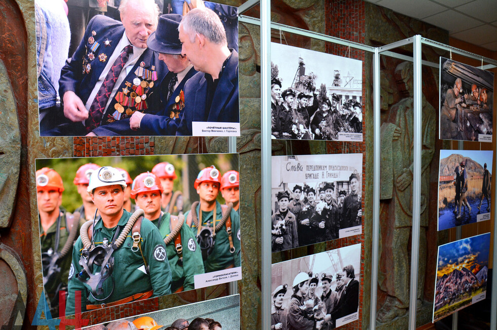 Экспозиция включает около 40 фотографий, посвященных труду горняков, рабочим будням шахт, истории промышленного развития Донецкого края. Отдельное место среди экспонатов занимают послевоенные снимки женщин-шахтеров, старые фото из семейных архивов, портреты прославленных горняков.