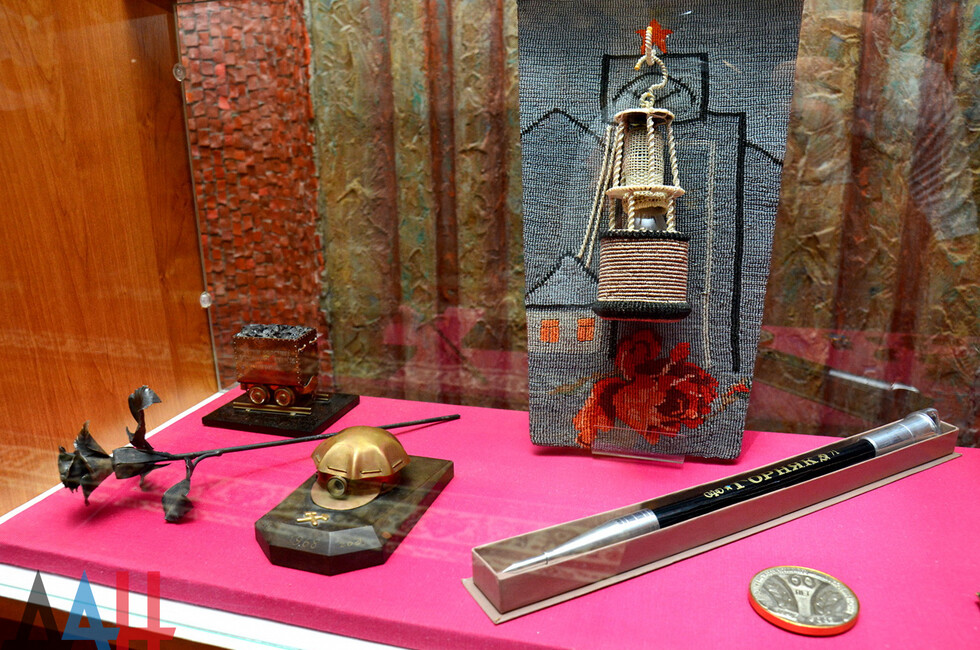 «В числе экспонатов - модель комбайна, подаренная Иваном Стрельченко, сувенир от руководства 383-й шахтерской дивизии, посуда с символикой шахтерской, посвященная выставке «Уголь-83»» - отметила также старший научный сотрудник научно-методического отдела истории Жанна Крыжная.