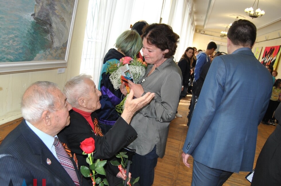 Церемонию открытия посетили председатель Народного Совета Республики Денис Пушилин, организатор выставки, заместитель министра культуры Ольга Кобец, общественники и художники-ветераны Великой Отечественной войны.