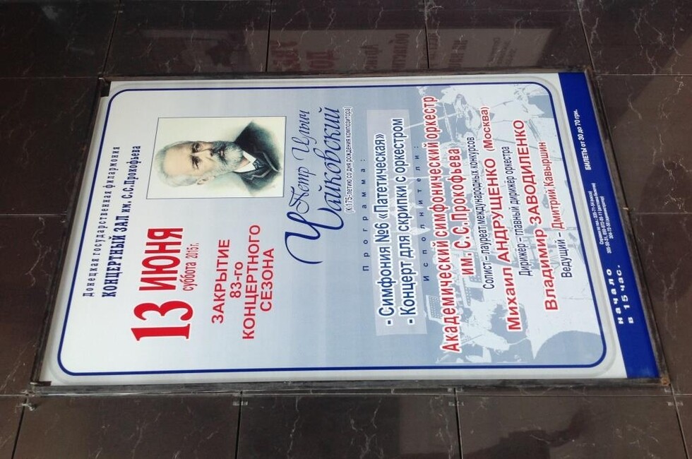 В программу вошли "Патетическая" симфония Чайковского и скрипичный концерт с оркестром. Как рассказал ДАН художественный руководитель филармонии Олег Бахтиозин, для исполнения сольной программы был приглашен лауреат международных конкурсов Михаил Андрущенко из Москвы. Концертный зал был заполнен слушателями.