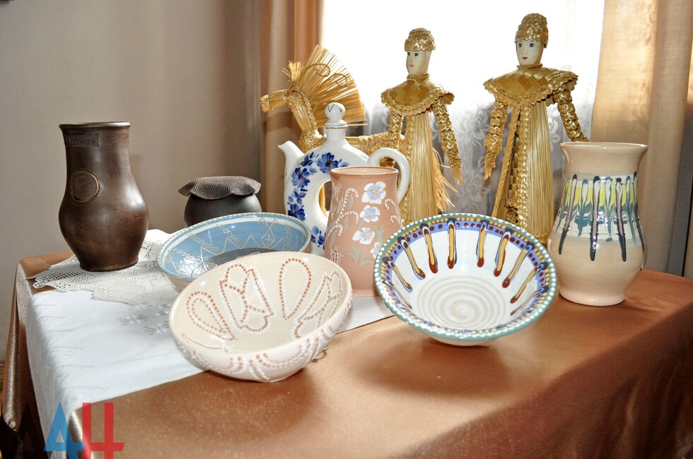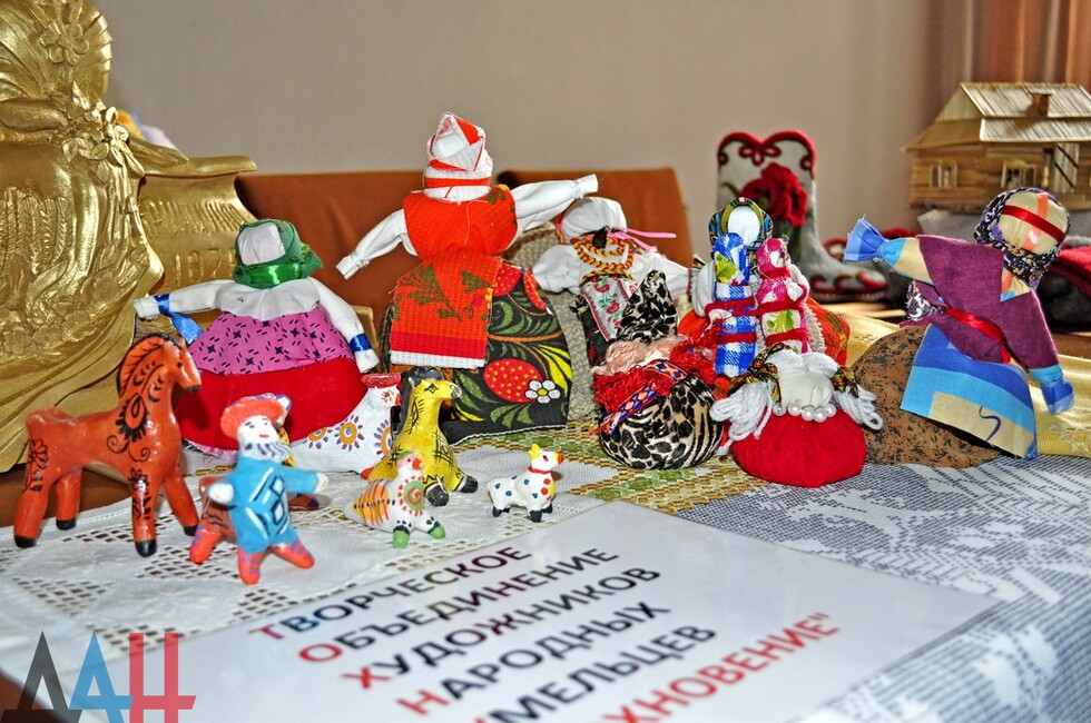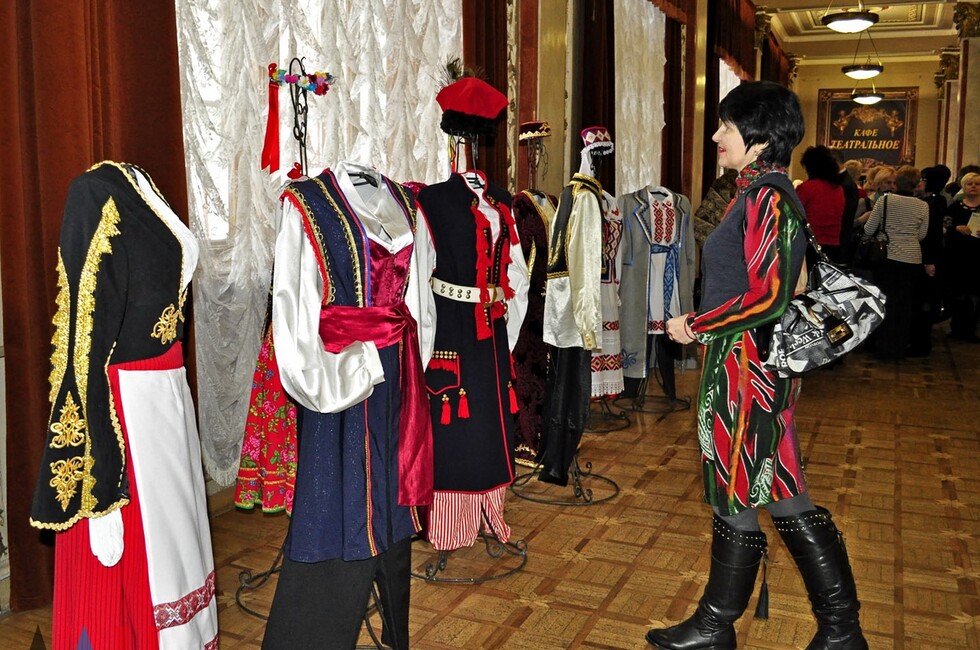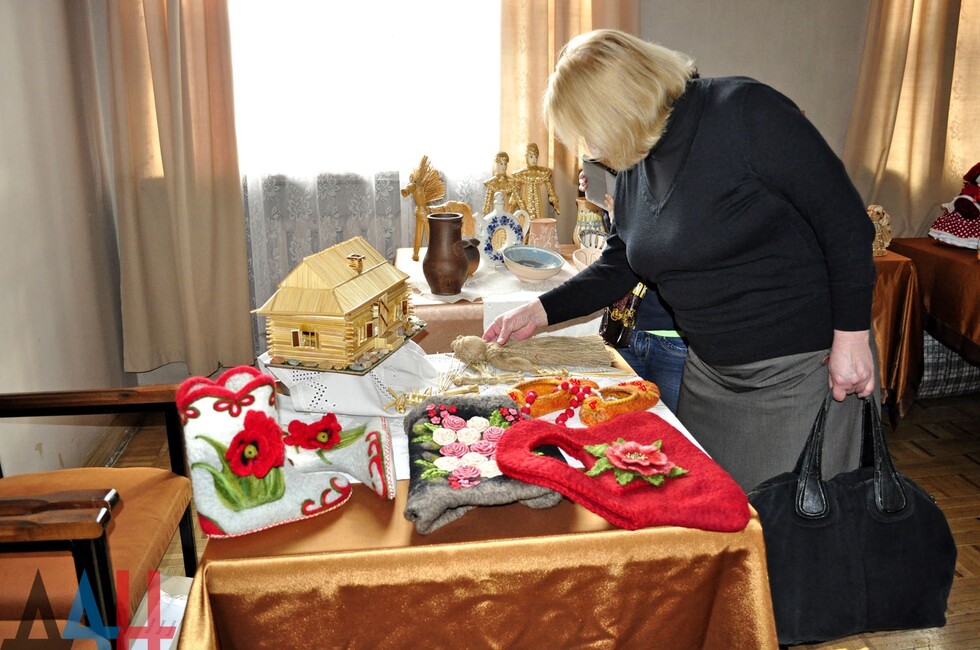 Перед концертом зрители могли ознакомиться с экспозициями, представленные в фойе театра. Краеведческий музей представил народные костюмы из своих фондов, причем среди костюмов были как реконструкции, так и аутентичные образцы, представляющие определенную историческую ценность. Библиотека им. Крупской провела книжную выставку художественной литературы на языках народов ДНР. Творческое объединение «Вдохновение» выставило работы народных умельцев: куклы-мотанки, изделия из дерева, соломы и глины.