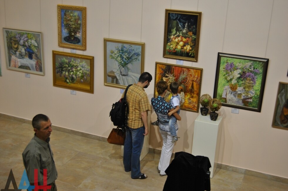 «Выставка состоит из трех частей. Первая часть - это работы художников столицы республики. Среди них известнейшие мастера: Юрий Зорко, Лариса Джарты, Екатерина Рыкова, Юрий Петрушин и другие», - отметила директор «Арт-Донбасса».