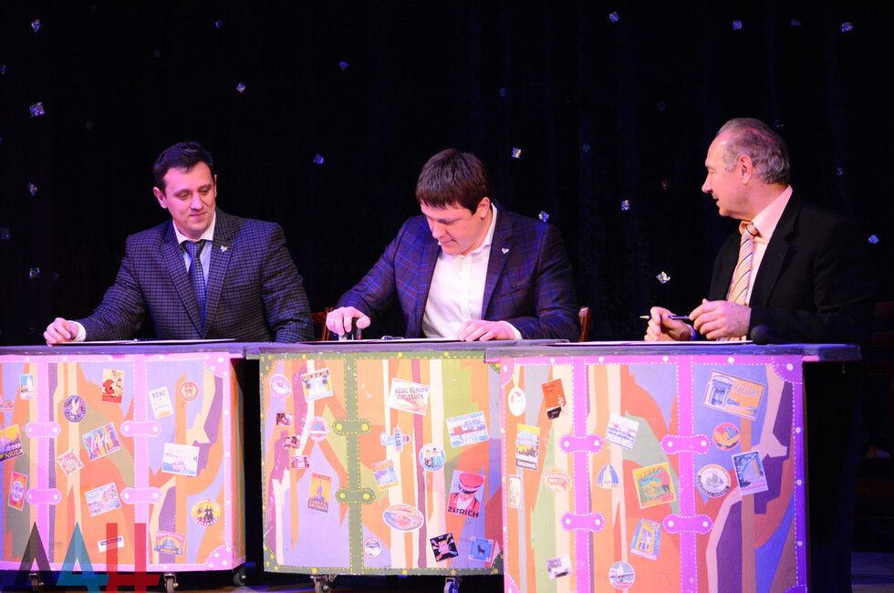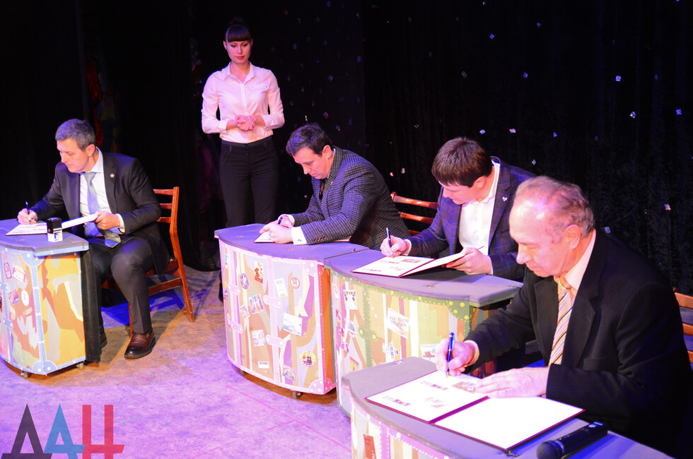 В мероприятии участвовали заместитель министра связи ДНР Виктор Цыбенко, министр культуры Михаил Желтяков, генеральный директор «Почты Донбасса» Денис Неудачин, генеральный директор театра Виктор Стариков.