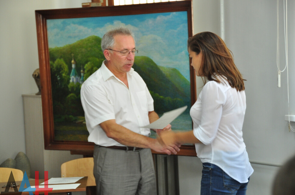 Донецк, 3 авг – корр. ДАН. Торжественное награждение победителей конкурса молодых художников «Палитра Меотиды» дипломами и сертификатами на денежные призы прошло сегодня в Донецком художественном училище. Вручение провел директор учреждения и председатель комиссии конкурса Юрий Молодчинный.