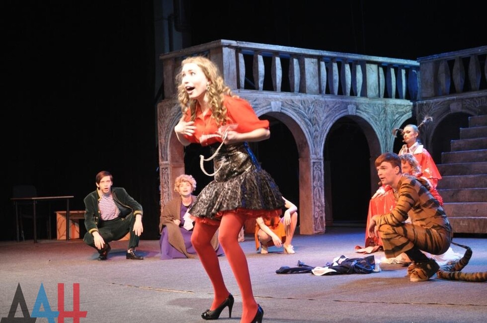 После торжественной части мероприятия на сцене Донецкой муздрамы был представлен капустник, подготовленный коллективом театра по случаю праздника. По ходу спектакля артисты обыграли ряд знакомых зрителю сюжетов и образов. Так, в одной из сценок актеры, подобно запорожцам, писали коллективное письмо – но не султану, а своим бывшим коллегам, бросившим муздраму и уехавшим на украинскую территорию.