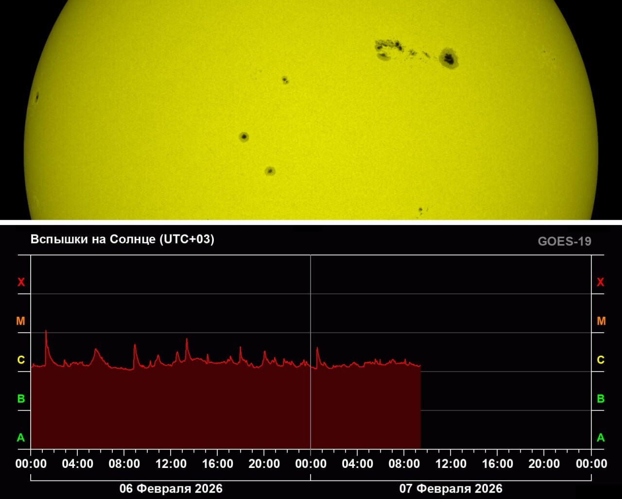 По данным Лаборатории солнечной астрономии ИКИ РАН, наблюдавшаяся с начала февраля активная область 4366 резко прекратила свою рекордную деятельность. Еще 4 и 5 февраля здесь регистрировалось по 11 вспышек высоких классов M и X, а уже 6 февраля их число упало до нуля.