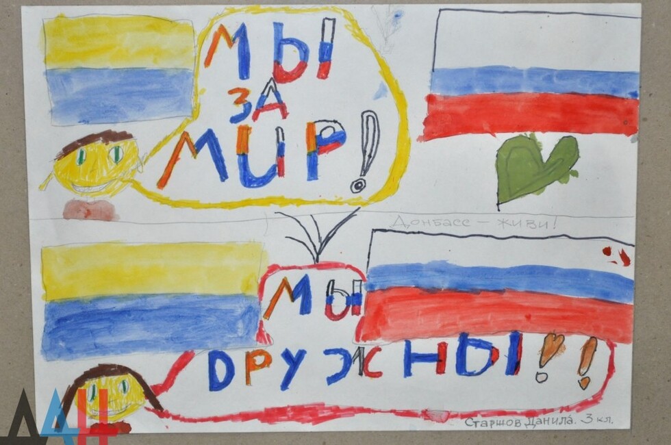 Проект «Мы хотим мира» был реализован при участии благотворительного фонда российского кинорежиссера Никиты Михалкова, и будет экспонироваться в ДНР до конца года. За это время выставка посетит Торез, Дебальцево, Иловайск и Снежное. *гс*мк*дя*ъъ