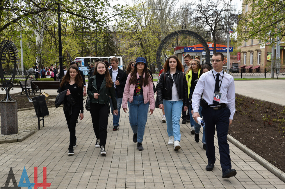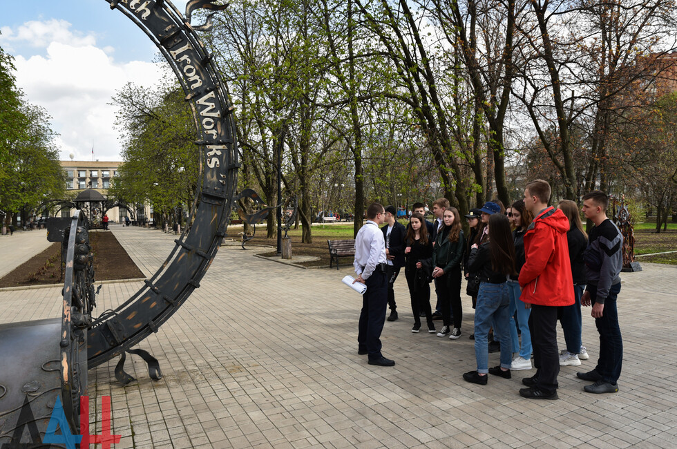 Стартовал пеший экскурсионный маршрут на площади им. Захарченко у Дома Правительства, где собравшимся рассказали о начале событий 2014 года. Следующей локацией стал Парк кованых фигур. Там расположена беседка со следами от пуль и осколков – ее перенесли в парк из района донецкого аэропорта, где она стояла во время ожесточенных боев. Лекция включала информацию о событиях, связанных с аэропортом, о работе коммунальщиков и сотрудников хозяйственных служб Донецка в 2014-2015 годах. Также экскурсоводы отметили работу журналистов, освещавших события в Донбассе во время активных боевых действий.