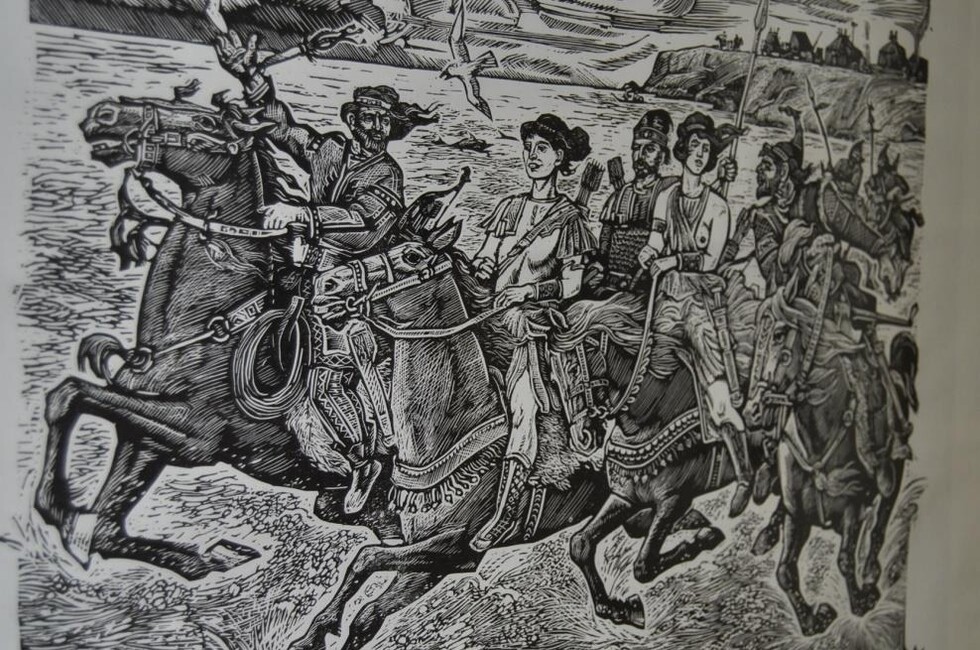 «Так были созданы десятки работ на историческую тему. 43 из них - живопись, графика, линогравюры - представлены на открывшихся выставках, - отметил Шендель. - Следуя музыке Сергея Прокофьева, я старался передать не только традиции, одеяния, военные доспехи скифов, но и сам дух их времен, генетическую память наших пращуров".