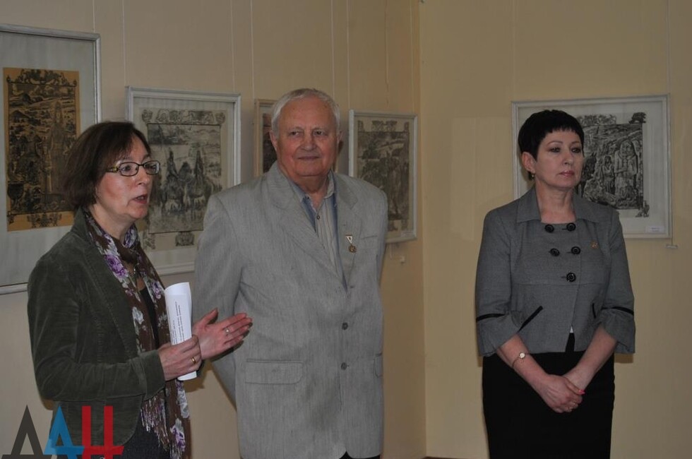 «Экспозиции, развернутые в залах Донецкого республиканского художественного музея, народный художник Украины Владимир Шендель посвятил 125-летию Сергея Прокофьева,- сказала на открытии заместитель министра культуры ДНР Ольга Кобец. - У самого Владимира Степановича в нынешнем году тоже юбилей. Ему исполняется 80 лет, большую часть из которых, воспевая Донбасс, он посвятил творчеству».
