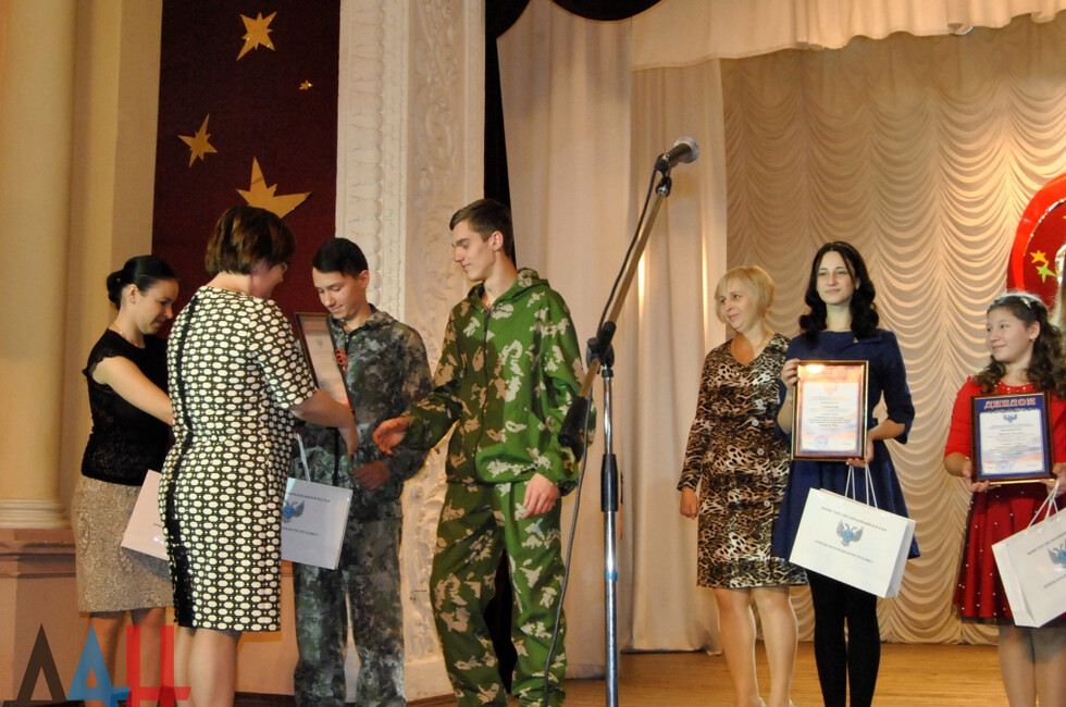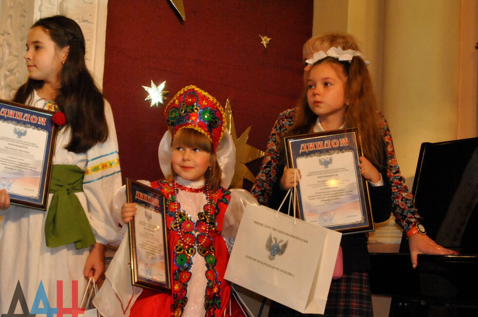 На торжественном мероприятии состоялось награждение более 200 победителей двух конкурсов. Лариса Полякова вручила юным талантам грамоты и дипломы министерства образования и науки ДНР, а также подарки – рюкзаки, игрушки, канцелярские принадлежности.