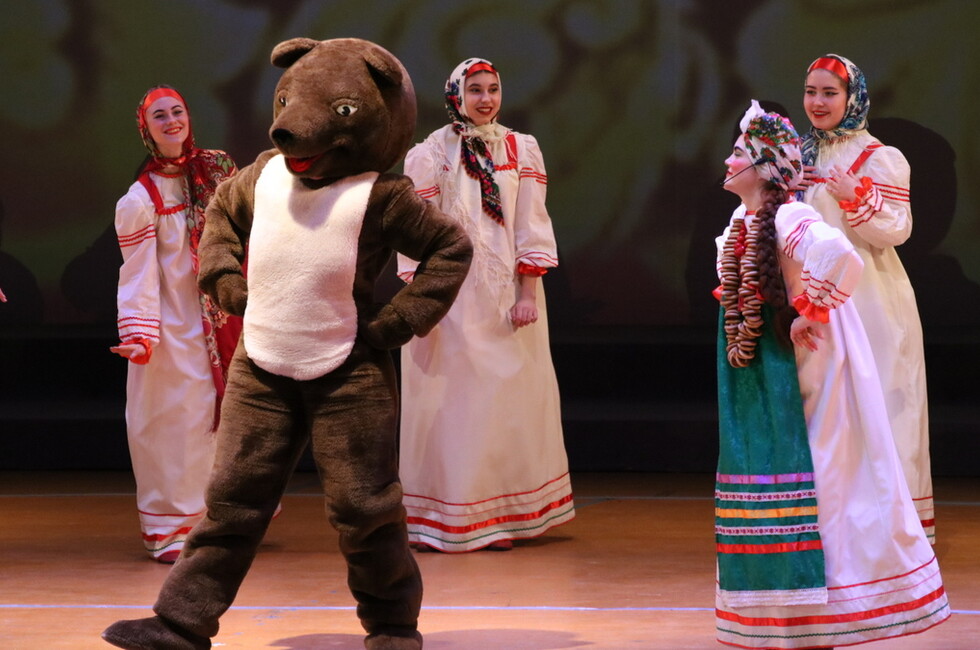 Наступлению весны была посвящена и праздничная программа – артисты исполнили народные песни «Поиграйте, красны девки», «Ой, вставала я ранёшенько», «Поехал муж по дрова», «Бестолковая любовь» и другие. В концерте прозвучали заклички – закликательные песни, в которых исполнитель обращается к различным явлениям природы с приветствиями или призывами. Сегодня в театре закликали весну, ожидая отступления морозов и наступления тепла. Традиционными героями праздника стали артисты в образах Масленицы, Медведя и Козы.