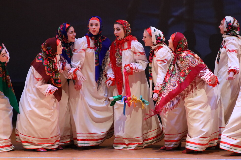 Также творческие коллективы Республики представили фольклорные постановки на тему масленичных гуляний и обрядов. Зрители увидели пляски скоморохов, сценки поцелуйных обрядов, вождения козы, обряда колодка, при котором холостым парням привязывали к ноге деревянную колоду в знак осуждения за то, что они не вступили в брак в положенное время. Завершился праздник приходом ряженого в образе Поста — как известно, Масленица предшествует Великому посту.