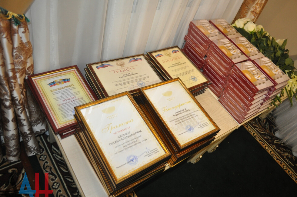 Награждение прошло в одном из залов театра. Всего было награждено более 40 человек. Из них пять получили благодарности председателя Народного совета ДНР, 15 – грамоты и благодарности Минкультуры ДНР. Были также вручены благодарности от руководства «Донбасс Оперы». Отметим, что в число награжденных вошли не только артисты, но также работники сцены, бухгалтеры, костюмеры и другие.
