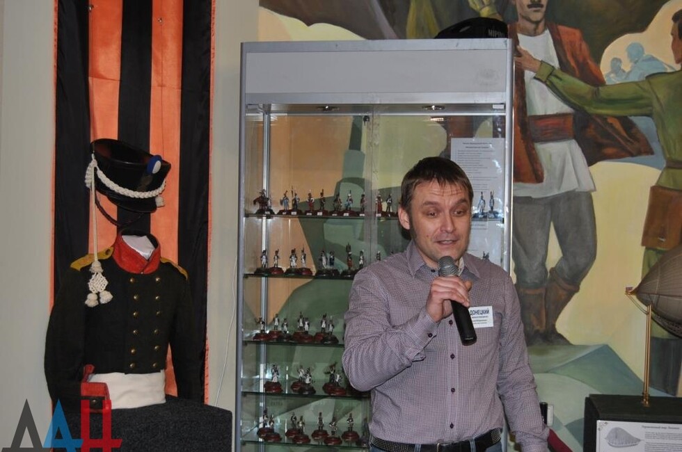 «Изучением тематики времен Наполеона, а также Первой Отечественной войны я занимаюсь с самого детства, - сказал собеседник агентства.- Нынешняя выставка – своеобразный итог моей поисковой работы за четверть века. На ней представлено около пятисот экспонатов, созданных своими руками. Дополняют выставку экспонаты из фондов Донецкого республиканского музея Великой Отечественной войны, а также материалы и документы, подаренные Донецку российским музеем-заповедником «Бородинское поле»».