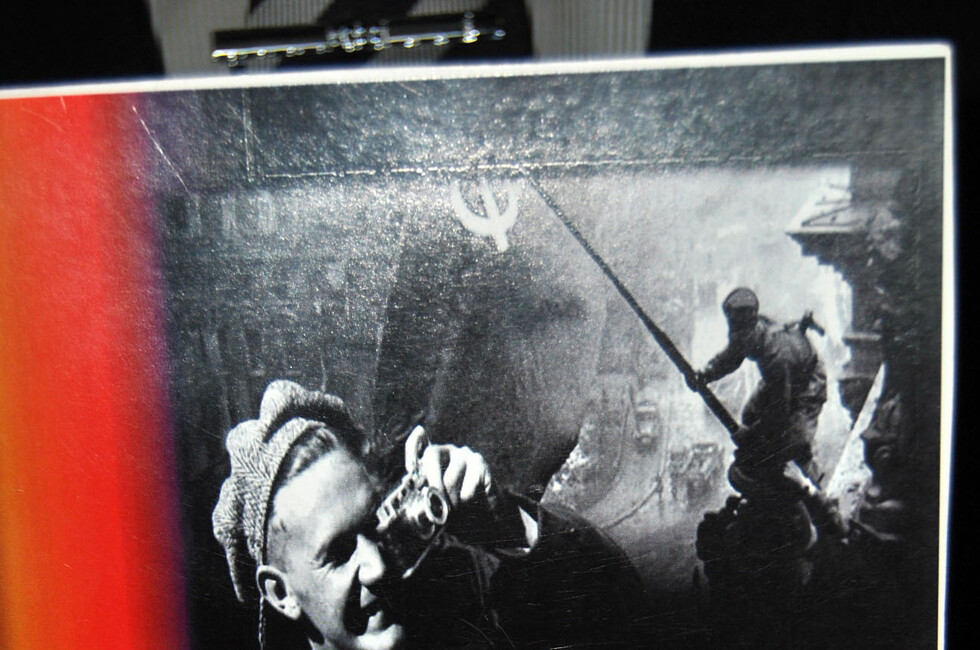 Евгений Ананьевич Халдей родился 10 марта 1917 года. С 13 лет начал работать на заводе. В то же время сделал свой первый снимок самодельным фотоаппаратом. Уже в 16 начал работать фотокорреспондентом. С 1939-го сотрудник «Фотохроники ТАСС». Среди известных трудов — «Знамя Победы над рейхстагом», фотография Марии Тимофеевны Шальневой (Ненаховой), родом из Воронежа, которая, будучи ефрейтором 87-го отдельного дорожно-эксплуатационного батальона, регулировала движение военной техники в Берлине. Это фото было опубликовано во многих газетах мира.