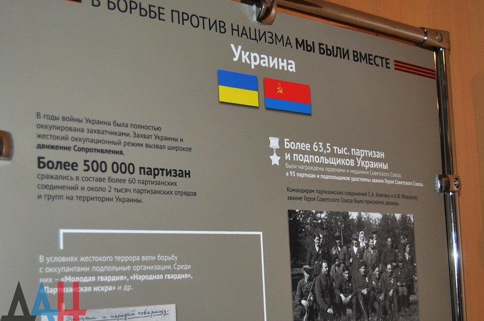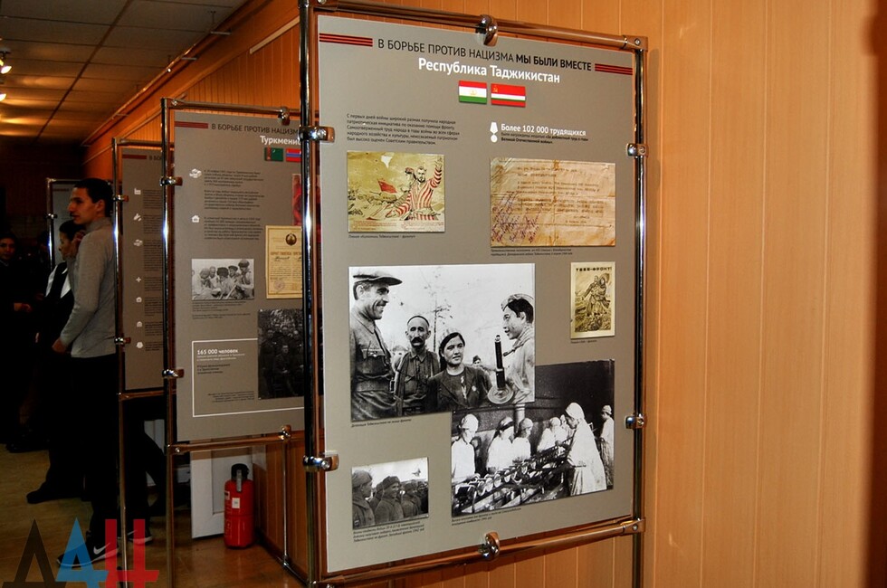 Донецк, 2 ноя – ДАН. (Добавлены фотографии) Документальная выставка «В борьбе против нацизма мы были вместе» из фондов Центральный музей Великой Отечественной войны города Москвы открылась сегодня в Донецком республиканском краеведческом музее. Экспозиция включает в себя 15 разделов, каждый из которых посвящен вкладу в борьбу с фашизмом всех бывших союзных республик.