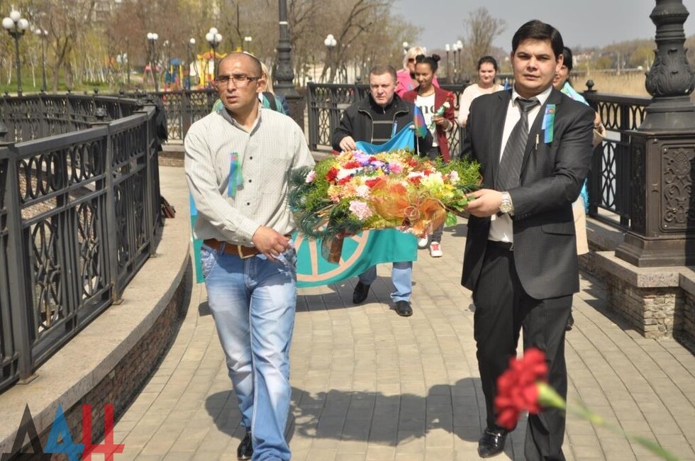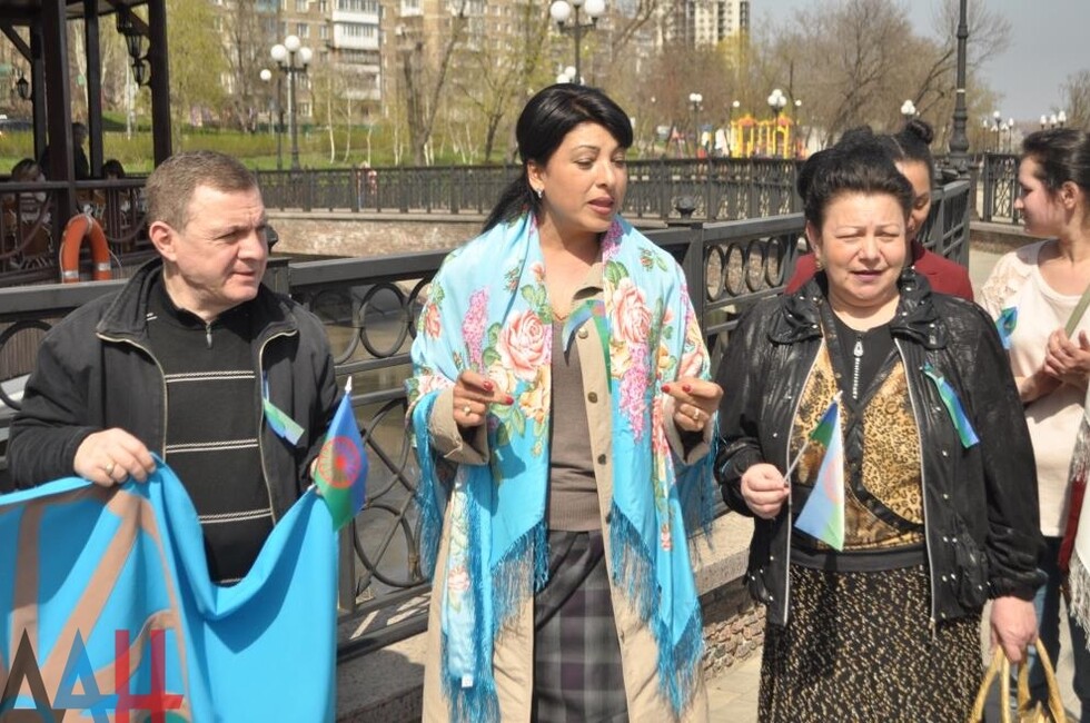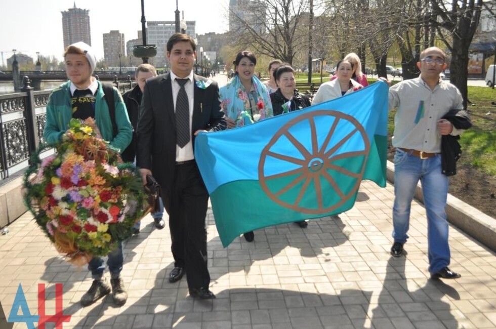 Цыгане, развернув свой национальный флаг, прошли по набережной. Они несли цветы и большой венок. На пешеходном мосту у таверны «Ракушка», они бросили венок и цветы в воду. После минуты молчания цыгане спели свой гимн «Джелем, джелем». Среди участников акции была известная макеевская певица, руководитель театра цыганской песни Луиза Жемчужная.