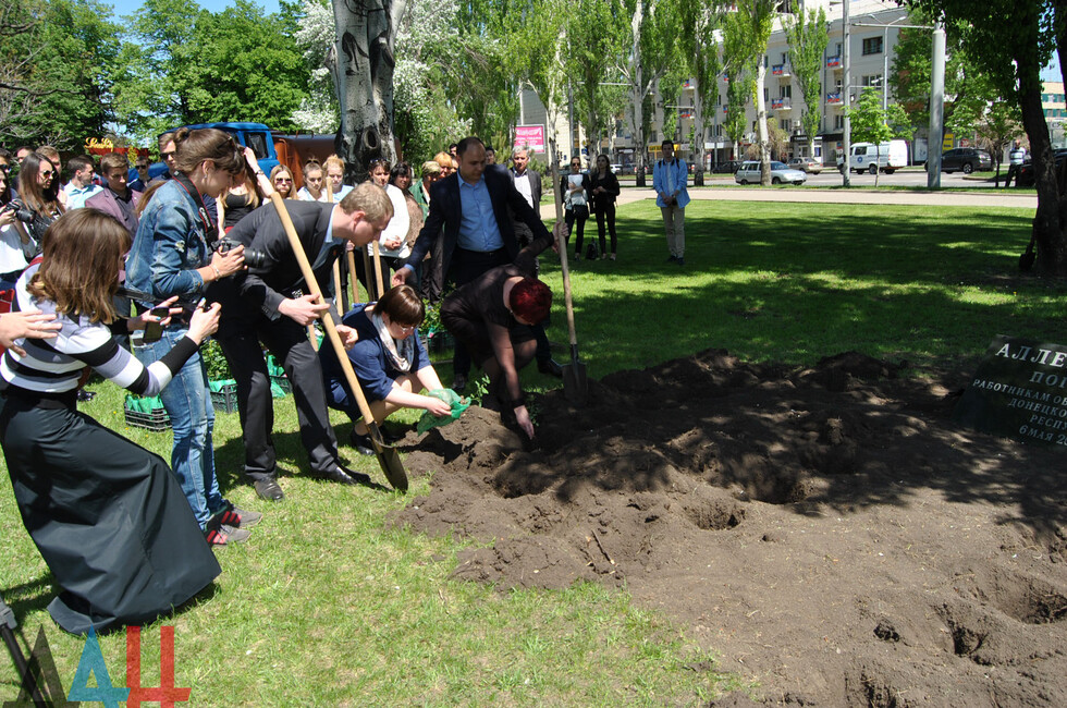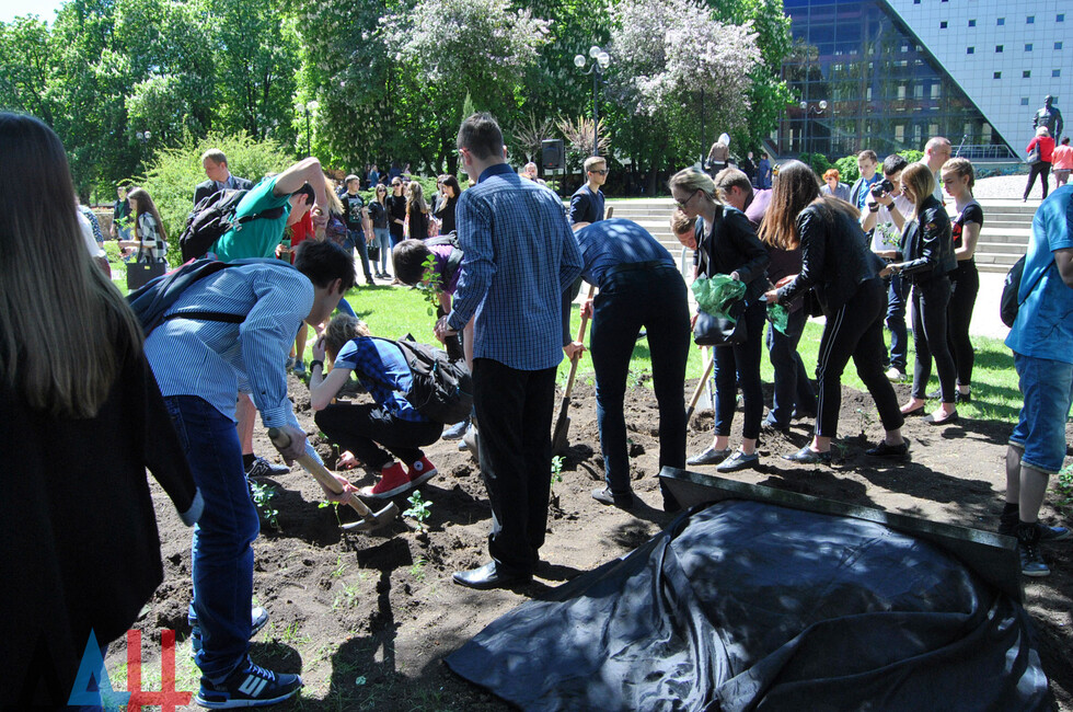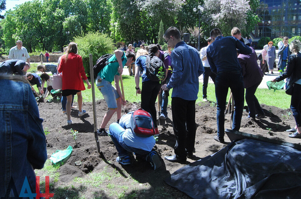 Донецк, 6 мая – ДАН. Аллея роз и мемориальный камень в память о работниках науки и образования, погибших в годы Великой Отечественной войны появились сегодня в Донецке. Более 200 саженцев были высажены студентами и учеными Донецкой Народной Республики.