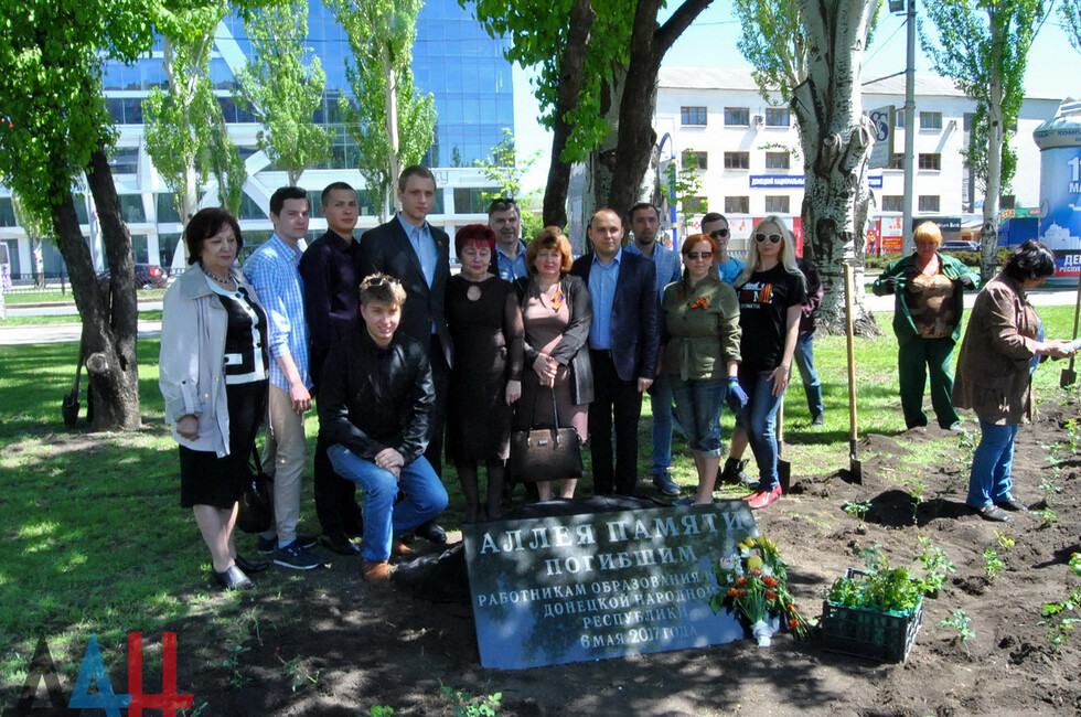 «Высаженная сегодня аллея из 200 роз и установленный мемориальный камень – инициатива профсоюзного бюро экономического факультета Донецкого национального университета, - рассказала в беседе с корр. ДАН министр образования и науки ДНР Лариса Полякова. - Со временем в столице ДНР будет установлен и памятник в честь погибших работников образования».