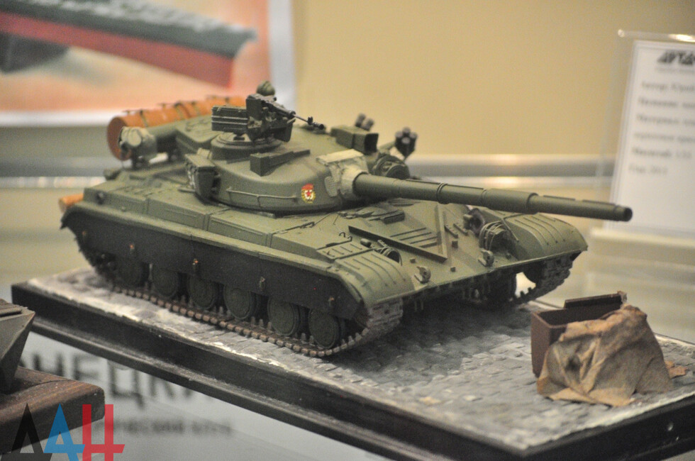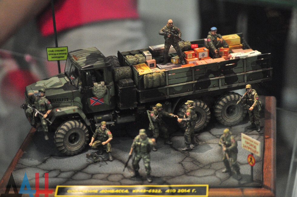 Представленные на выставке экспонаты выполнены в различных жанрах, техниках и направлениях - живопись, графика, работы из стекла и дерева. Всех их объединяют события в Донбассе, личности и жизнь Республики. Так, на портретах тут изображены Герои ДНР – Глава Республики Александр Захарченко, Михаил Толстых, более известный под позывным «Гиви» и Арсен Павлов под позывным «Моторола». В свою очередь мастер из России Андрей Плотников передал «АртДонбассу» свою картину, которую выполнил на части стекла из донецкого аэропорта, изобразив на нем кортик Павлова, его берета и шеврон батальона «Спарта». Дополняют экспозицию 15 миниатюр военной техники, сделанные участниками донецкого Клуба военно-технического моделирования.